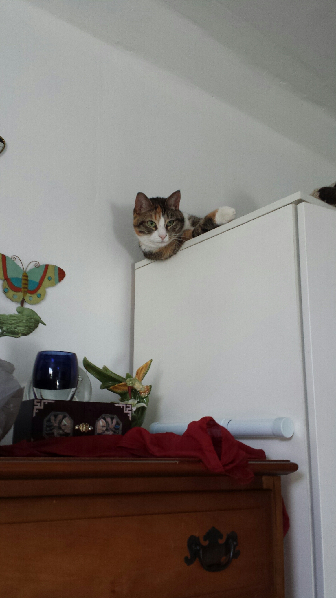 Supervision Posted on January 20, 2016January 19, 2016 by sevencatsandcounting If your humans are not receptive to your paws-on assistance with housework, the least you can do is supervise them from high up. –Lily Share this: Click to share on X (Opens in new window) X Click to share on Facebook (Opens in new window) Facebook Like Loading... Related