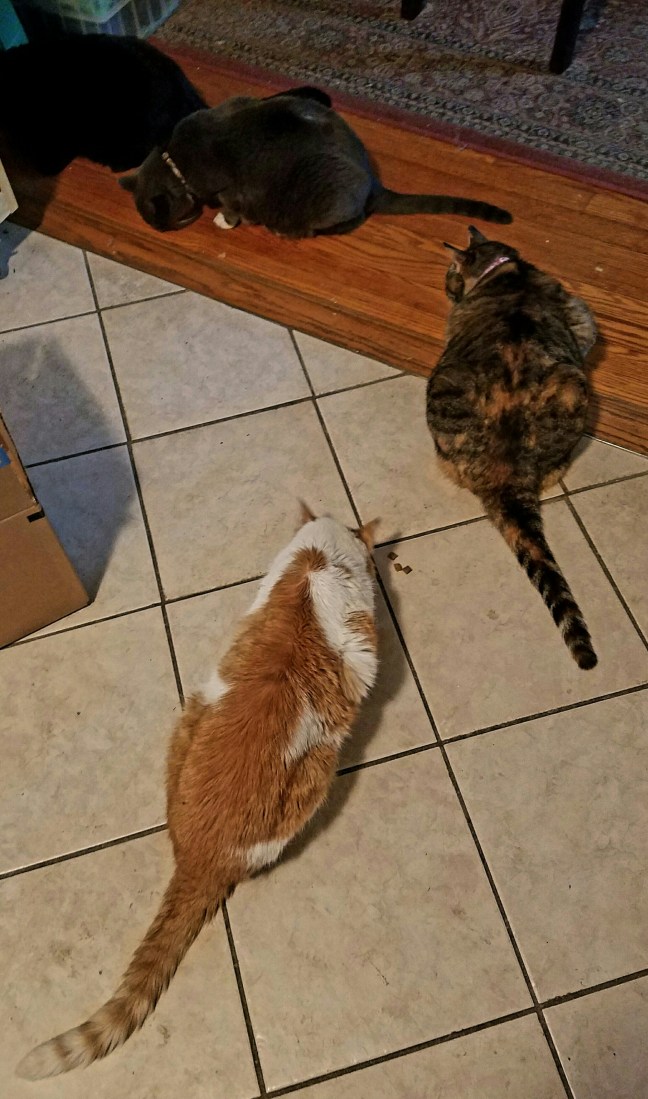 Human Daddy was there. He was holding something, a smartphone I’ve heard the Humans call it. The smartphone was mewling through a kitten app, as the Humans call it.