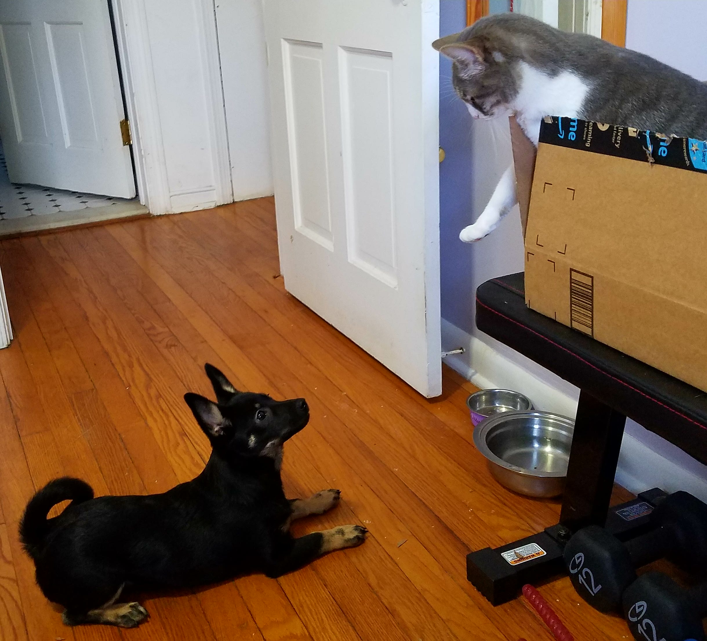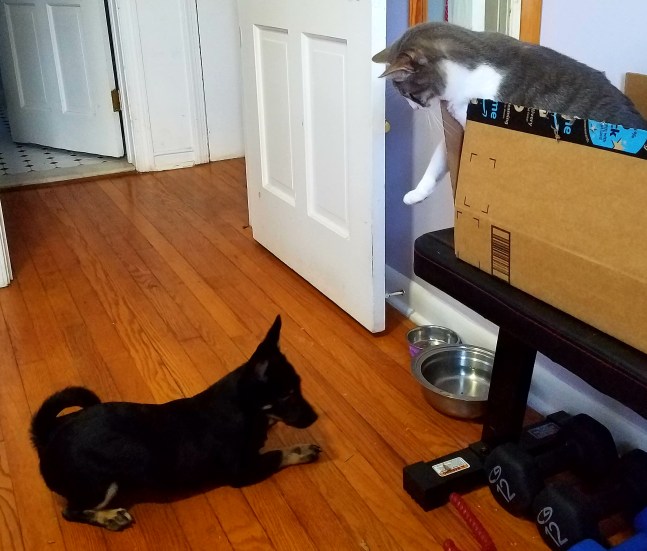 Training Posted on January 25, 2018 by sevencatsandcounting It’s never too early to start training your Baby Woofie. Use firm meows and simple paw gestures. Down, Xena! I mean all of you, even your head! Good Girl. –Luna