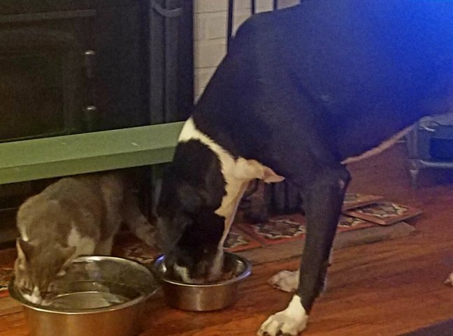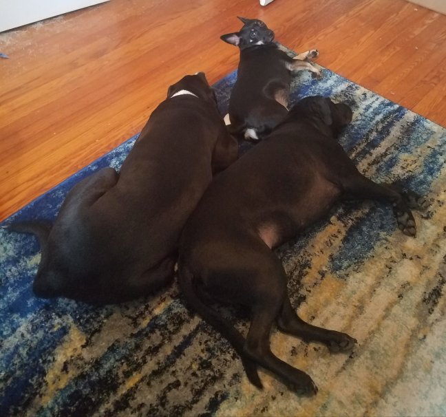 Maybe if I nibble gently on Papa Cosmo’s ears, I can wake him up for a round of wrestle or chase.