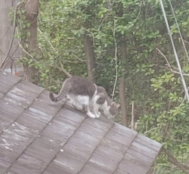 High up Posted on April 29, 2020April 29, 2020 by sevencatsandcounting What am I doing up here on the garage roof? Oh, nothing, really… just inspecting the shingles. –Luna Share this: Click to share on X (Opens in new window) X Click to share on Facebook (Opens in new window) Facebook Like Loading... Related