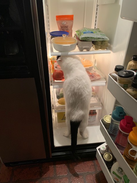 Hmmm… I don’t see nearly enough chicken in here and my Human is wasting valuable storage shelf space on vegetables!