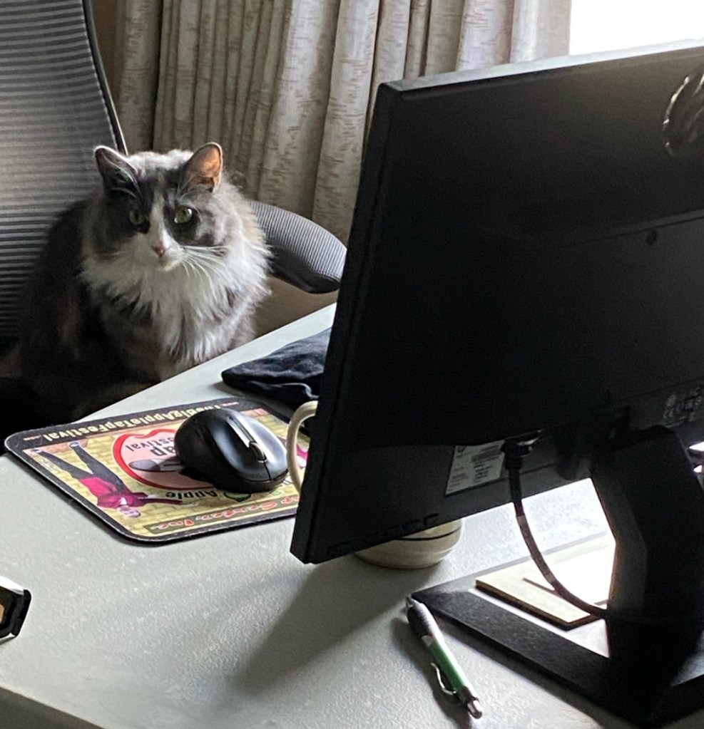 Your chair, Human Mommy? Do its golden stripes complement your fur… er… hair just so?