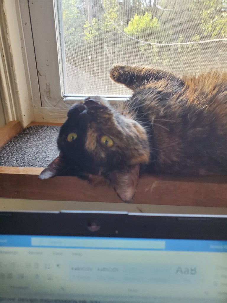 Yes, Human Mommy, I understand that it’s the last day of the work week and that you need to sit somewhere to perform your clickety-clackety typing.