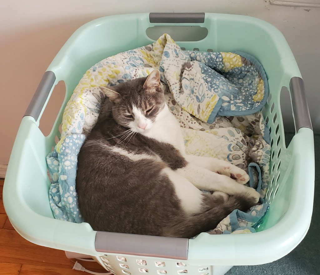 Of course I’m smiling! I’m curled up next to my Human Mommy.