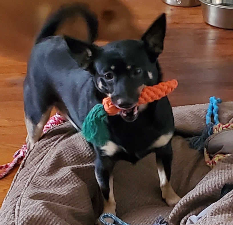 I’m a Puppy Princess with pointy ears and a rope carrot clenched firmly in my mouth.