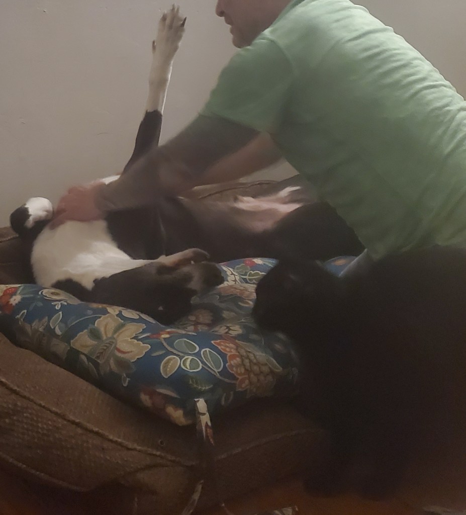 What do you want to do today, Papa Cosmo? Should we wrestle, or play tug, or maybe just chase the Meowies?