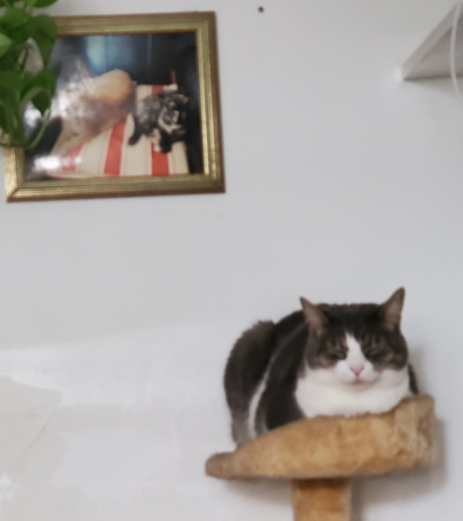 …than beneath a portrait of my ancestors, Great Grampaw Stretch and Great Grammy Holly Cat Golightly.