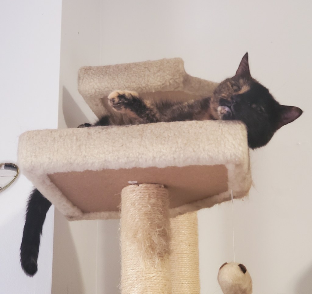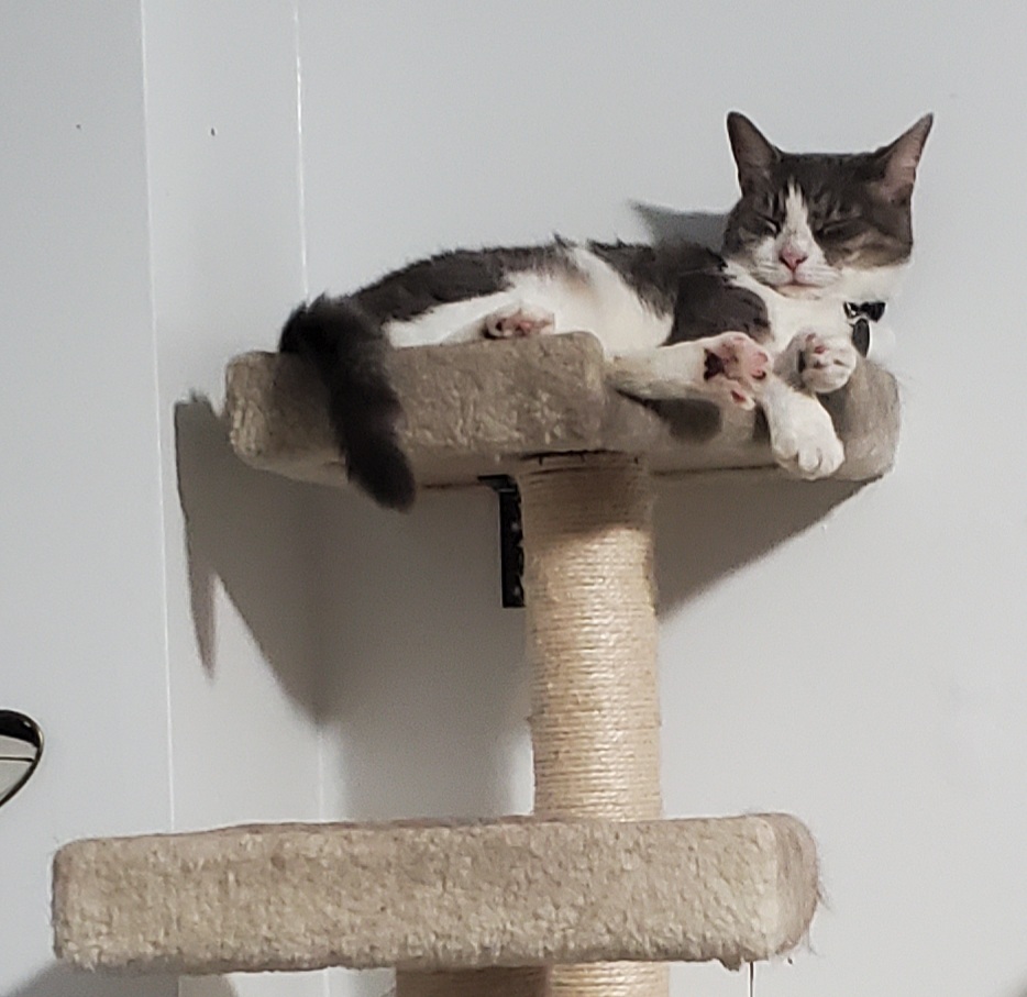 It means I get to enjoy the highest perch of the Most Sacred Cat Tree.