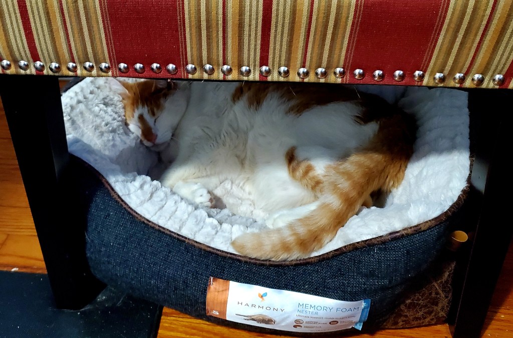 I’m a Cat. The bed is mine. What don’t you understand? Purrs, Finnegan