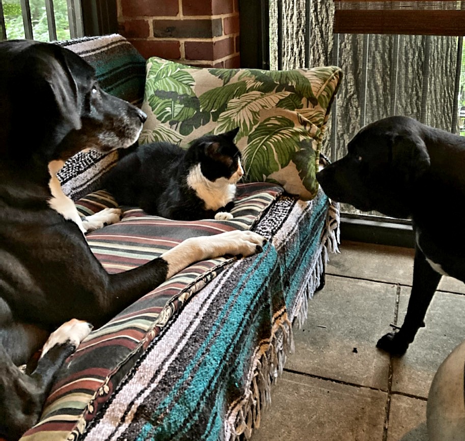 You meet our formal dress code in your fetching tuxedo, but there simply isn’t room for you on the fancy couch.