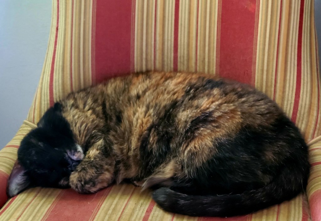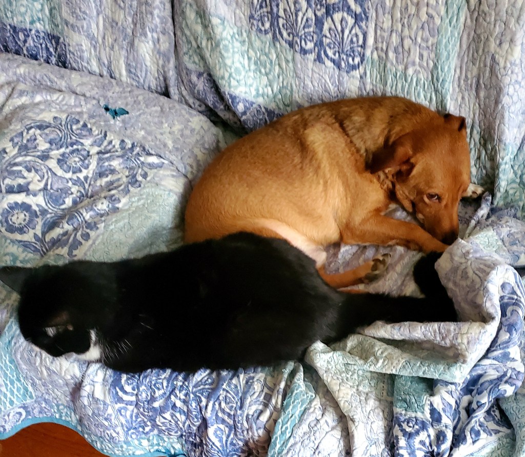 Sometimes, the biggest, baddest, blackest and whitest Boss Cat will settle down next to you, practically draping his tail over your innocent Canine nose.