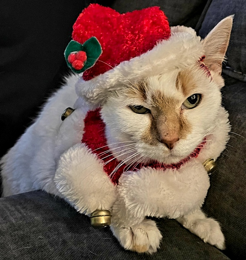 Human Daddy is going to force me to wear my embarrassing reindeer hoodie!