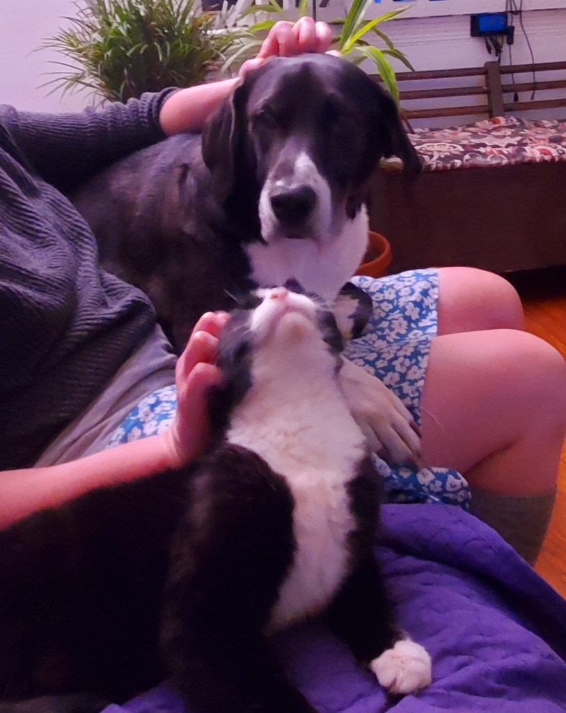 Fortunately, she has two hands, which is good since more than one handsome, tuxedo-wearing gentleman needs his head skritched.