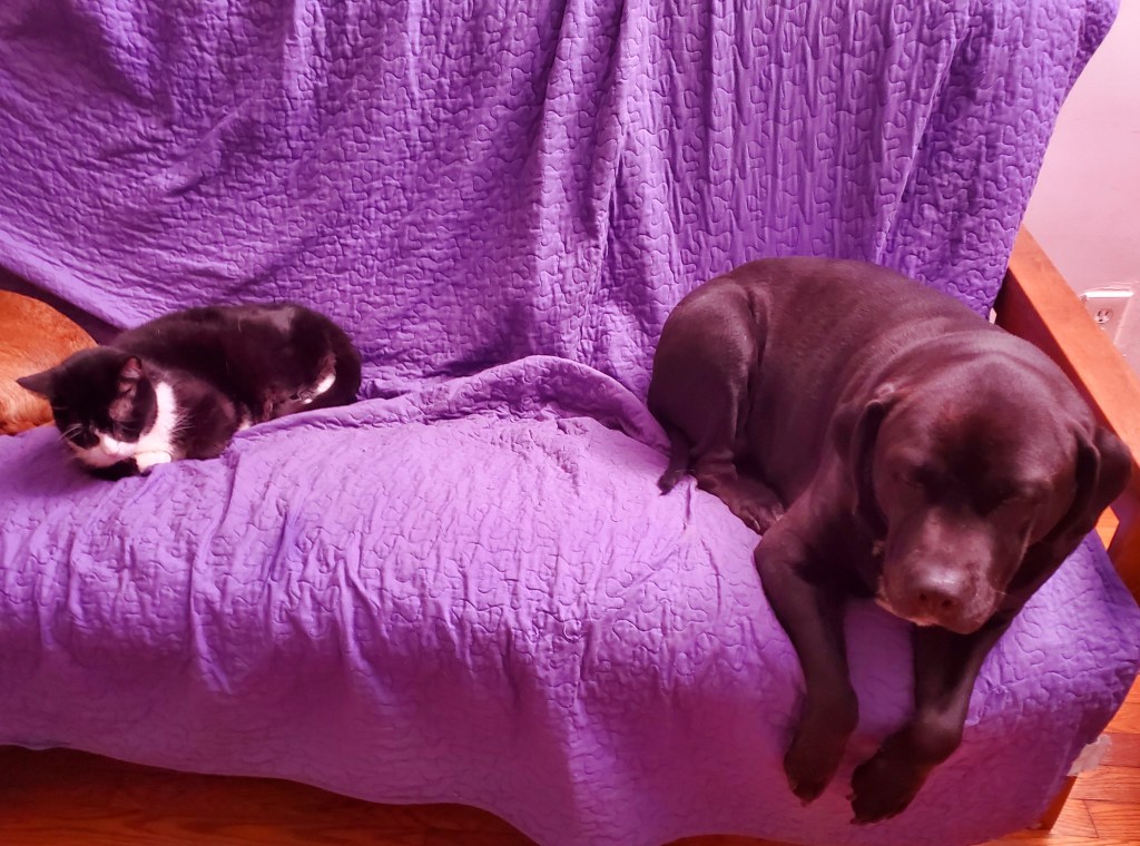 Sometimes the biggest, baddest, blackest and whitest Boss Cat lets Woofies share the couch with him.