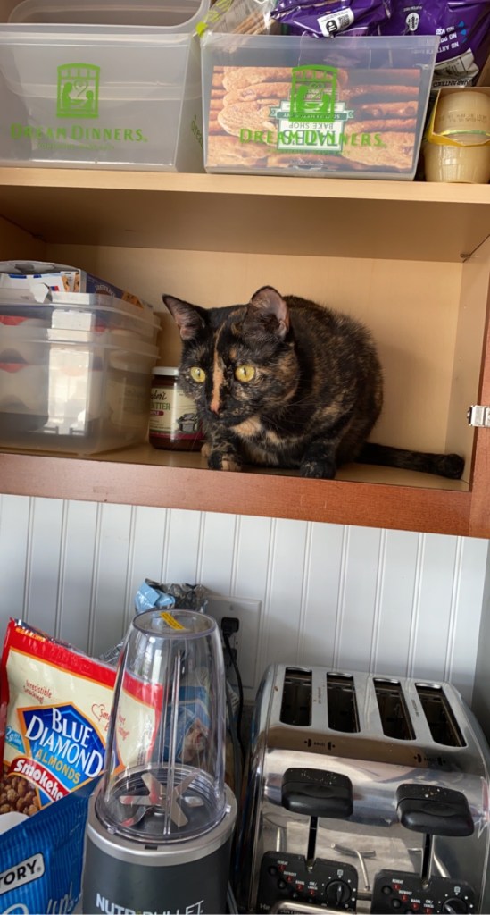 Humans require constant supervision, especially when they are cleaning out their cupboards to ensure that they do not mistakenly dispose of your beloved Temptation treats.