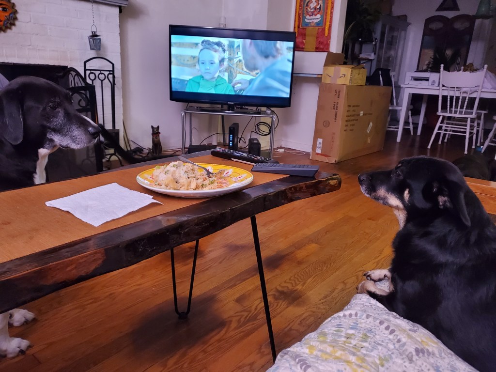 Human Daddy’s dinner smells mighty nice, doesn’t it, Papa Cosmo?