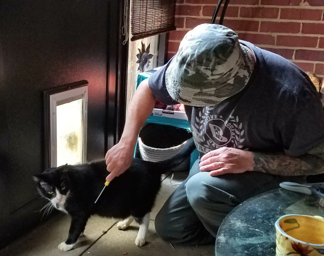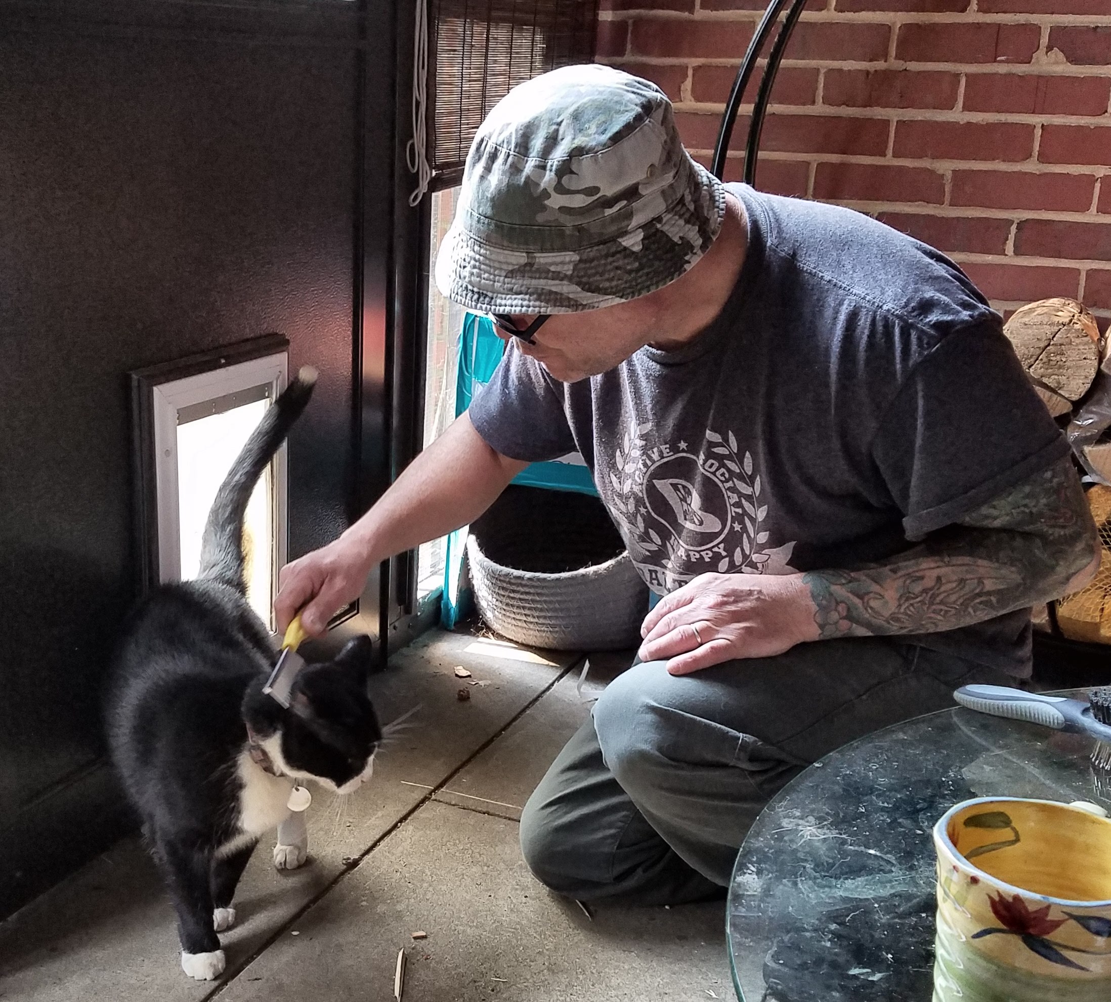 Even the Biggest, Baddest, Blackest and Whitest Boss Cat looks forward to his weekly brushing.