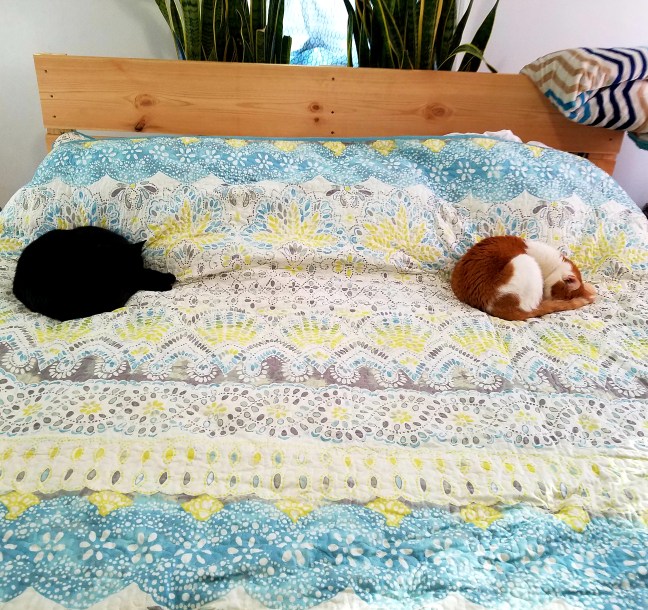 …and a dirty comforter waiting to be laundered, where does the discerning Panther install himself?