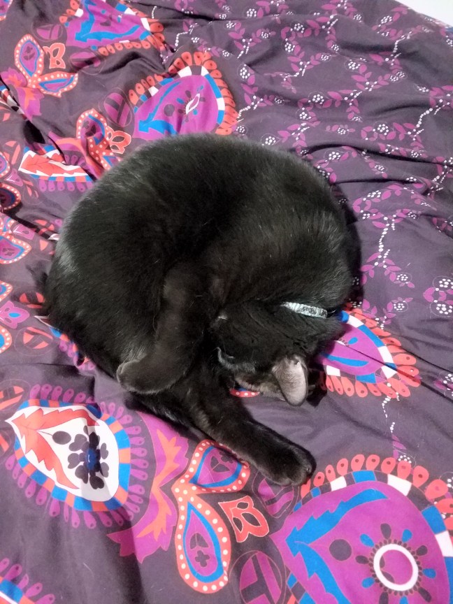 I am Here Posted on December 1, 2017 by sevencatsandcounting I am here or am I? I might just be a glossy whorl, part of the pattern of the new bed sheet. –Darth Vader