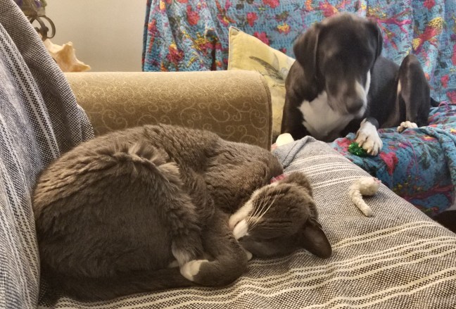 Biggest Bestie Posted on December 7, 2017 by sevencatsandcounting I may not be the biggest Kitty yet… …but I’ve sure got the biggest bestie. –Luna
