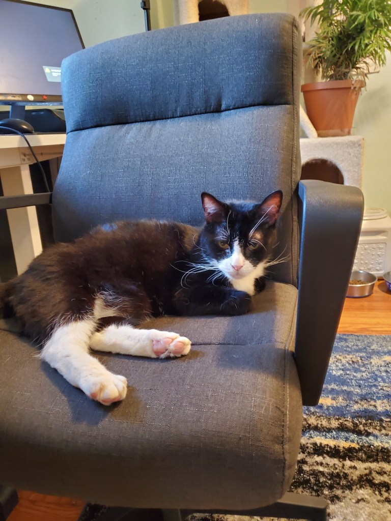 Yes, Human Mommy, I understand that it’s the last day of the work week and that you need to sit somewhere to perform your clickety-clackety typing.