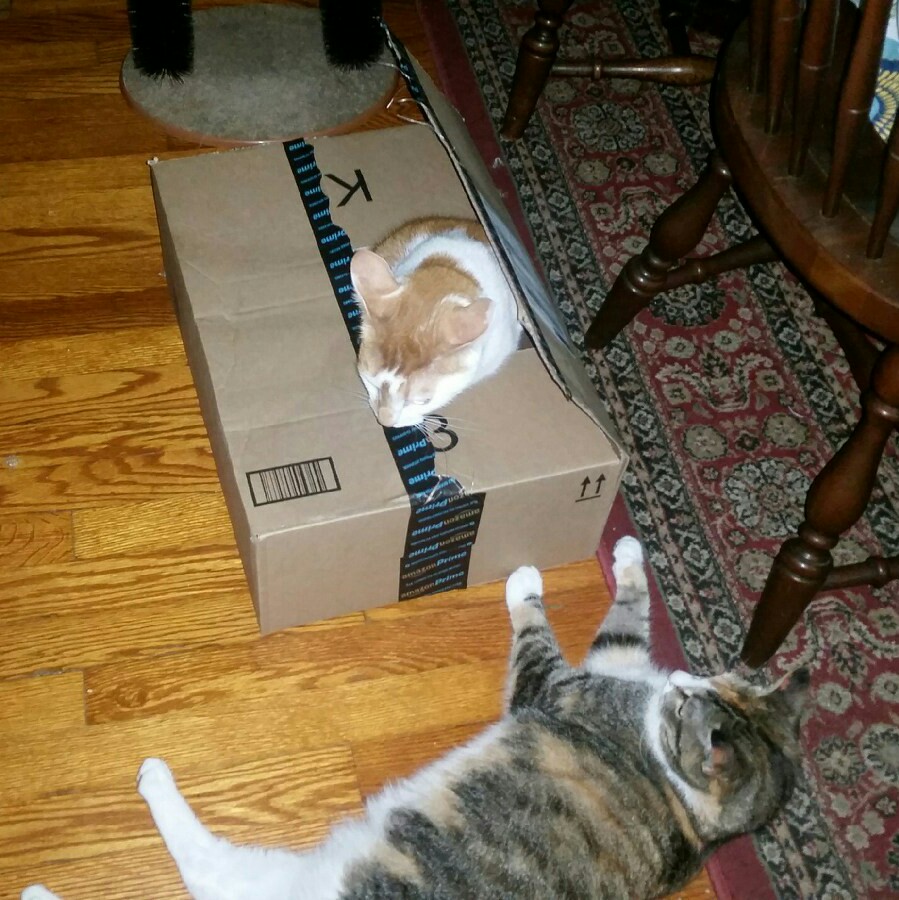 Leaving your Box Posted on August 21, 2015 by sevencatsandcounting Sometimes you may be tempted to leave your current box to look for a new bigger better box. Be careful, though. If you leave your current box, chances are someone else will take it over. –Lily