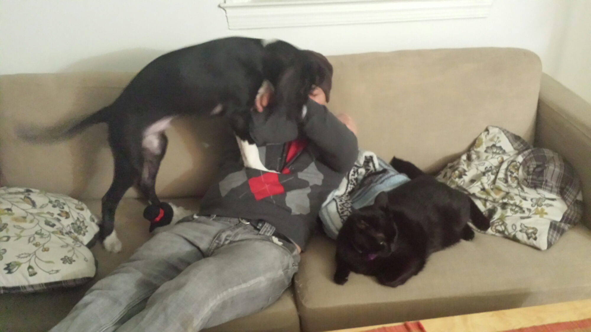 Big Sister Posted on January 28, 2017January 27, 2017 by sevencatsandcounting It’s awesome to have a big sister who can show you the coolest places to hang out, like on top of Human Mommy’s favorite hoodie, and how to glare so that Human Mommy knows better than to disturb you by trying to put on her hoodie. –Luna