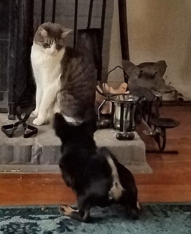 New Year’s Resolution Posted on January 1, 2018 by sevencatsandcounting In 2018, I resolve to become Luna’s friend! It may take awhile, but I know I can do it, same as big brother Cosmo did in 2017! –Xena