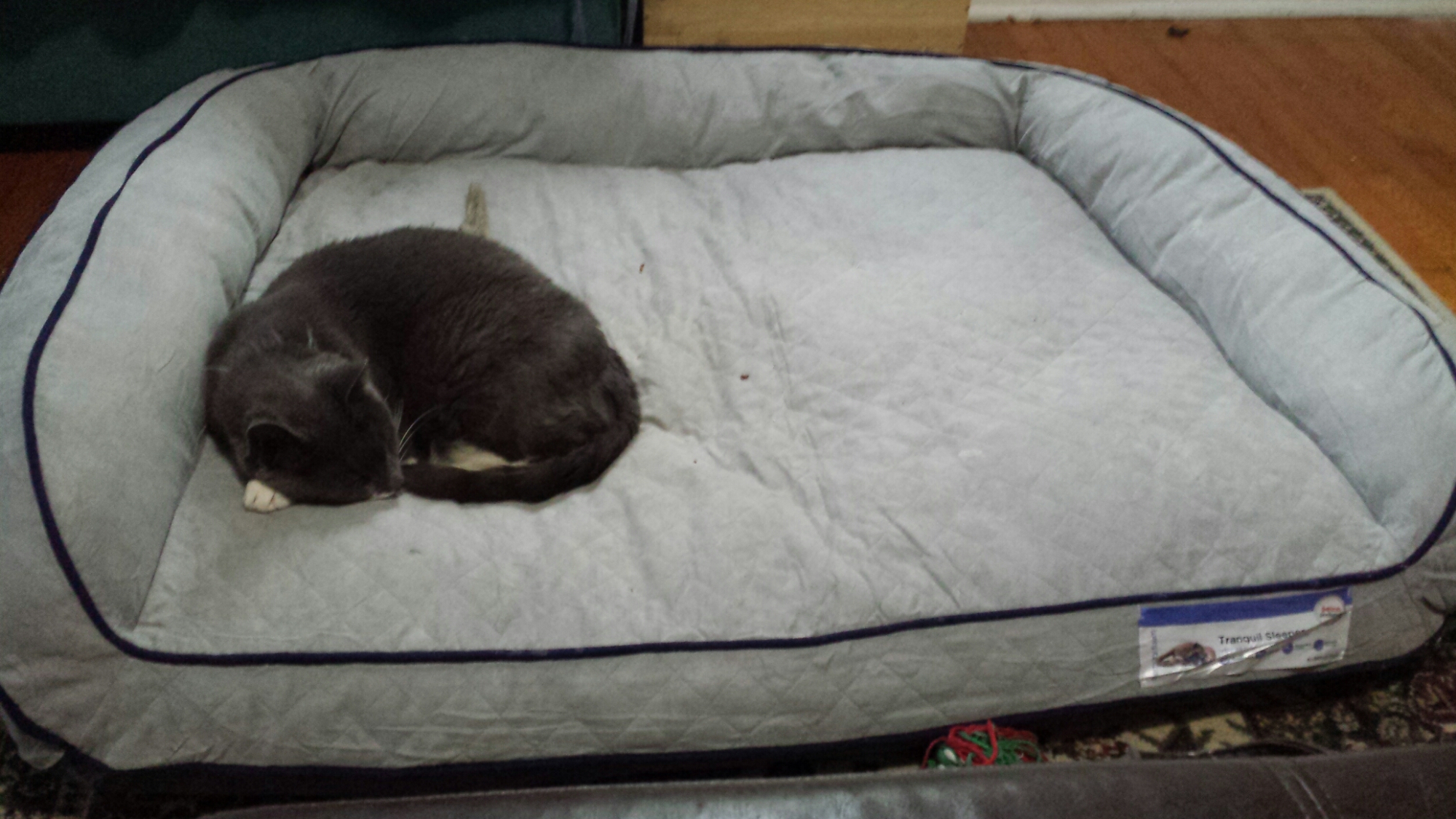 If you share your home with multiple kitties and woofies, establish a timeshare. For example, the woofies can have the grey bed at night, but it belongs to the kitties during the day.