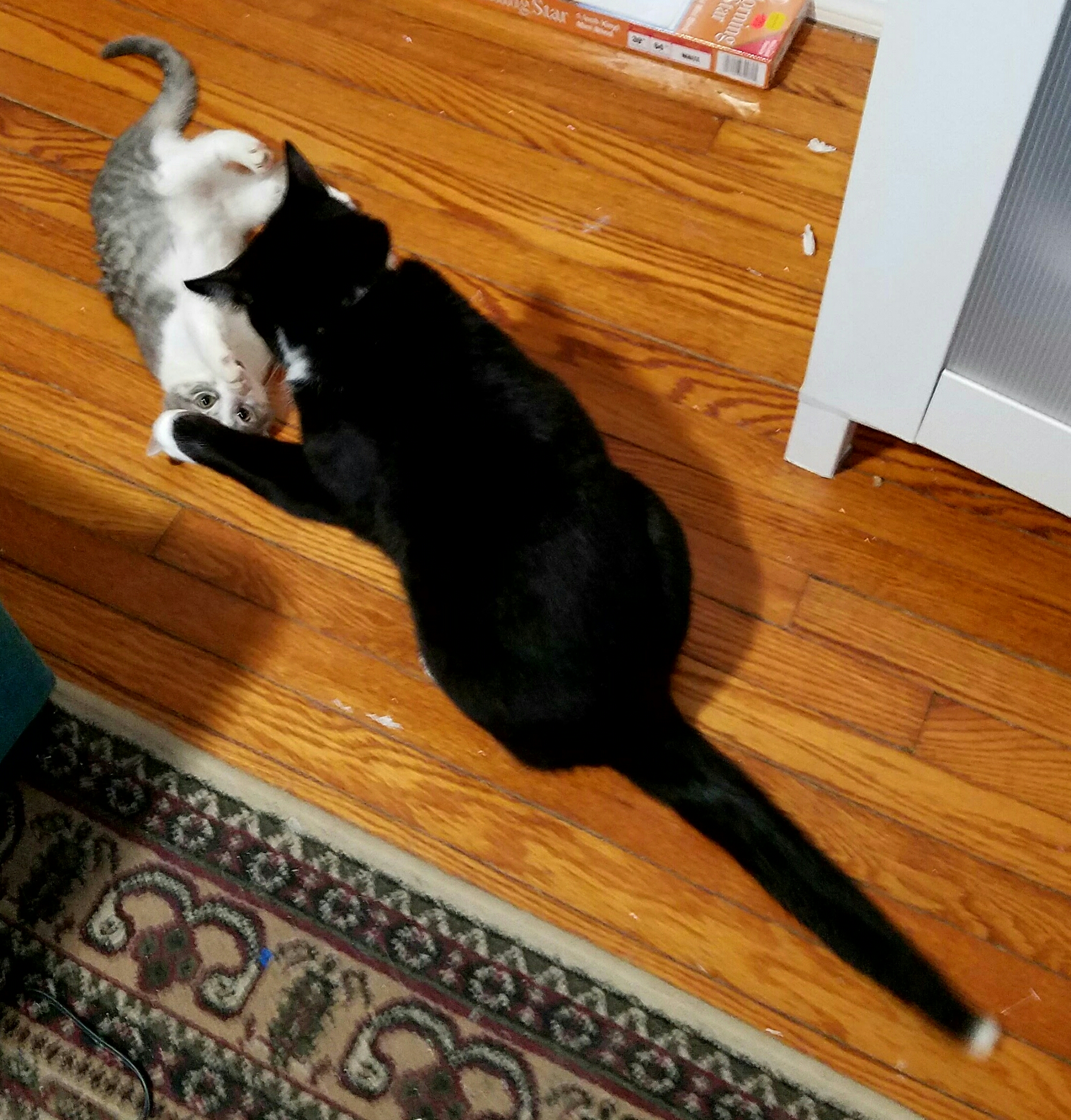 Objective: Teach Rookie Kitten to face the right way on the treadmill. Turn the treadmill on HIGH. Take a well deserved nap.