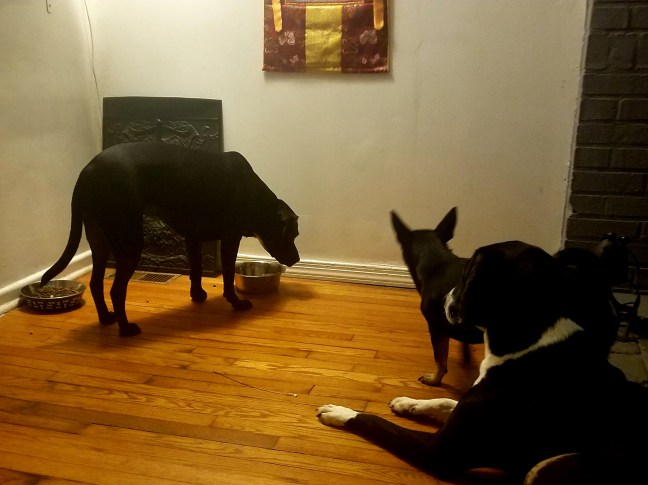 That chicken smells divine, but I would never stoop to begging like an undignified Woofie.
