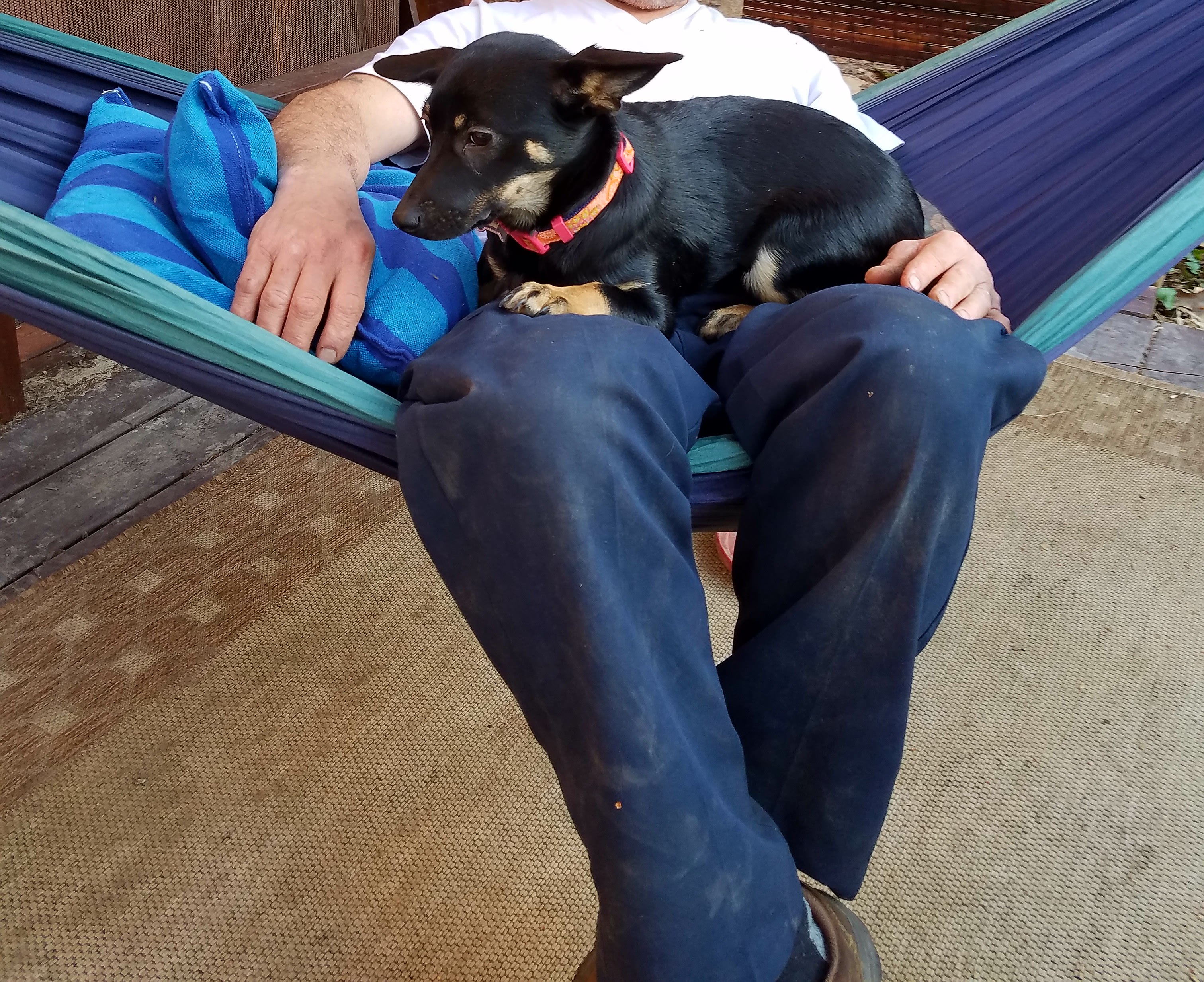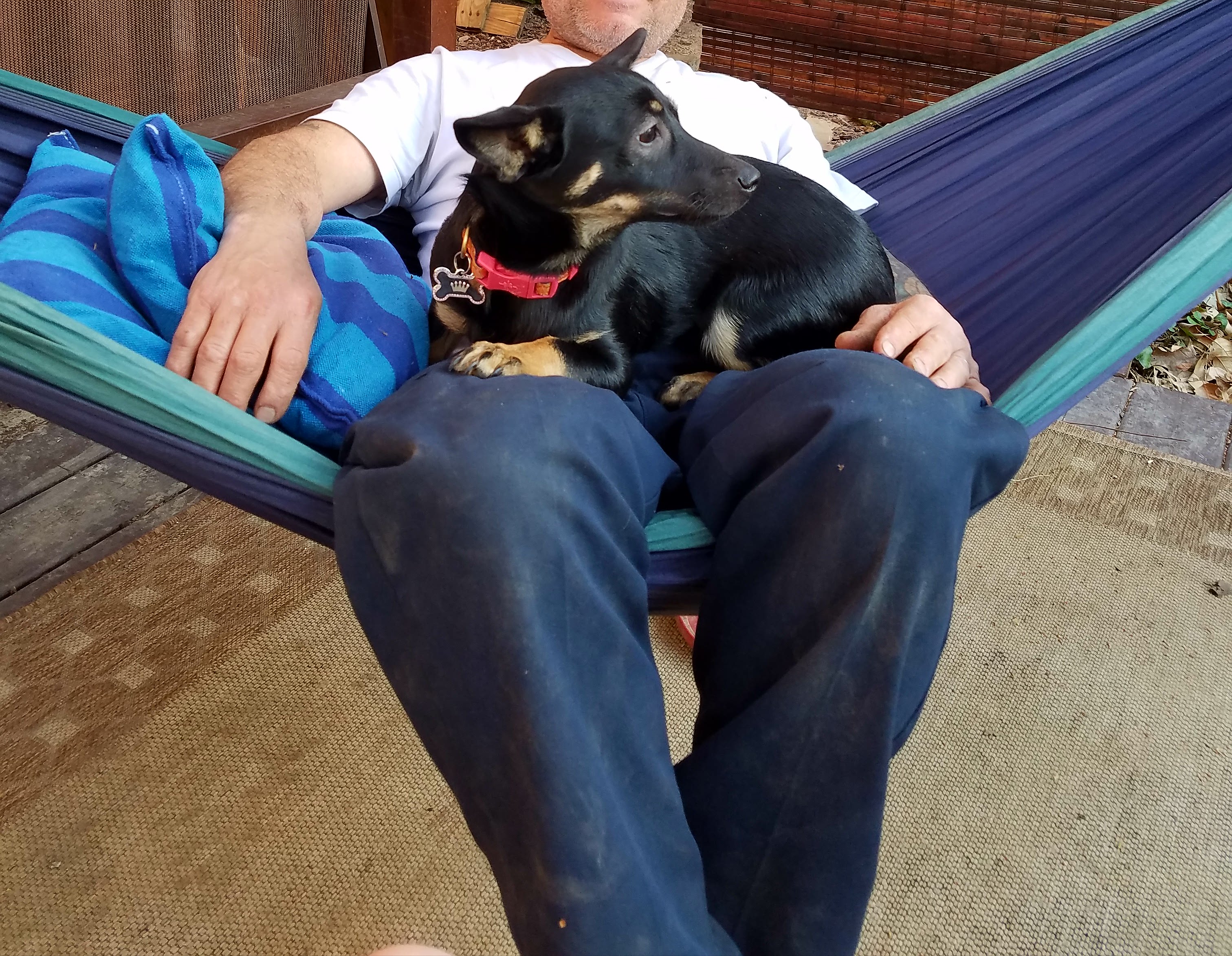 Uh-oh! I maybe shouldn’t have eaten so much grass before joining you on the hammock, Human Daddy.