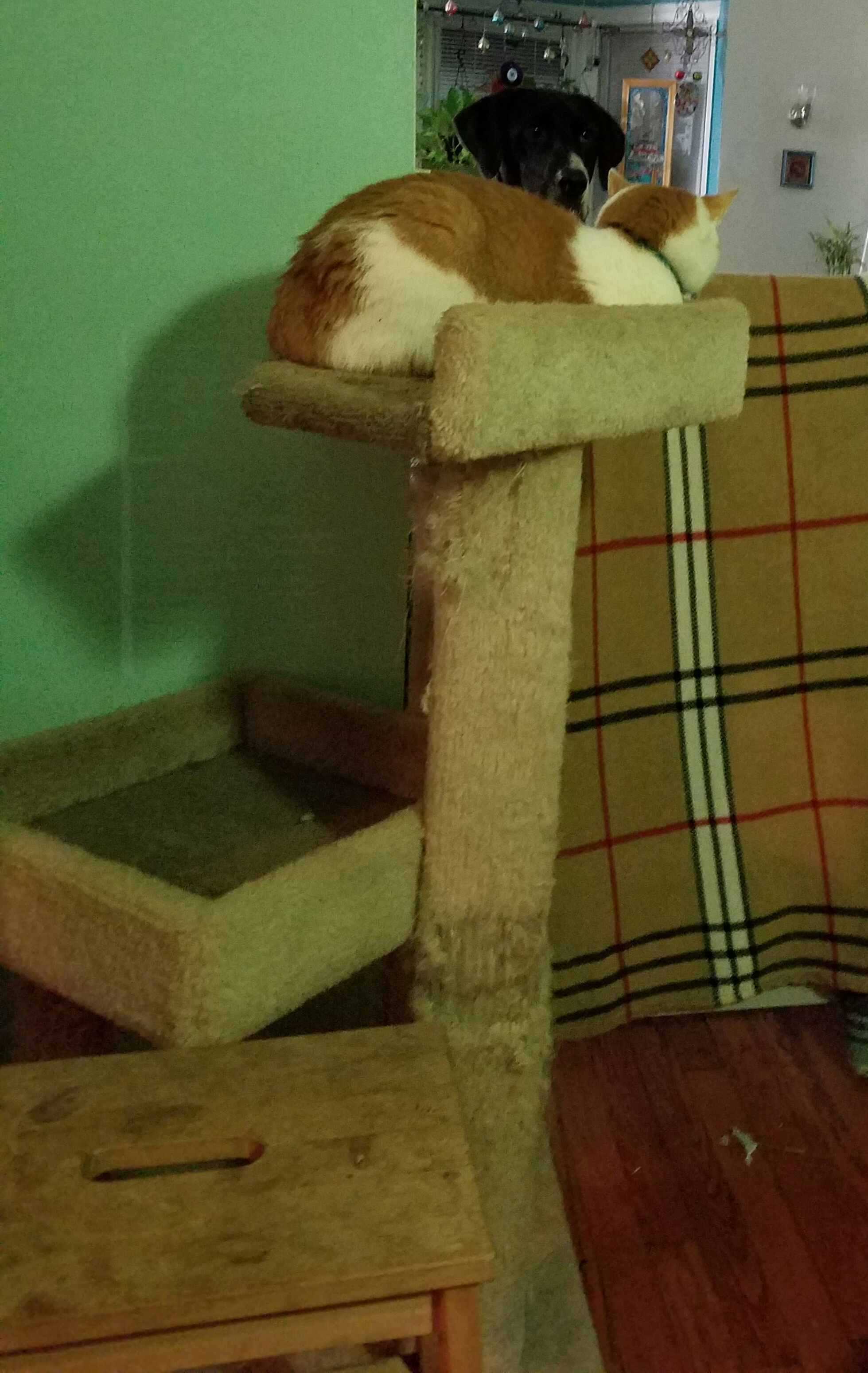 Too tall Posted on October 1, 2016October 1, 2016 by sevencatsandcounting Is your Woofie brother taller than your tallest Cat tree? Time to access your Humans’ Amazon Prime account to procure a Cat tree at least twice as tall. –Finnegan