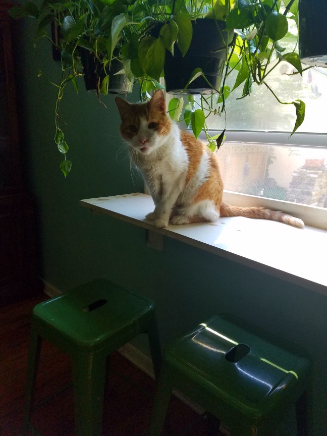Jump Posted on July 12, 2017July 12, 2017 by sevencatsandcounting I read an informative WordPress Post yesterday. I learned that, at a mere 15 years old, I am considered “geriatric.” I don’t feel “geriatric,” not at all. Just look at how high I can jump! –Charlie