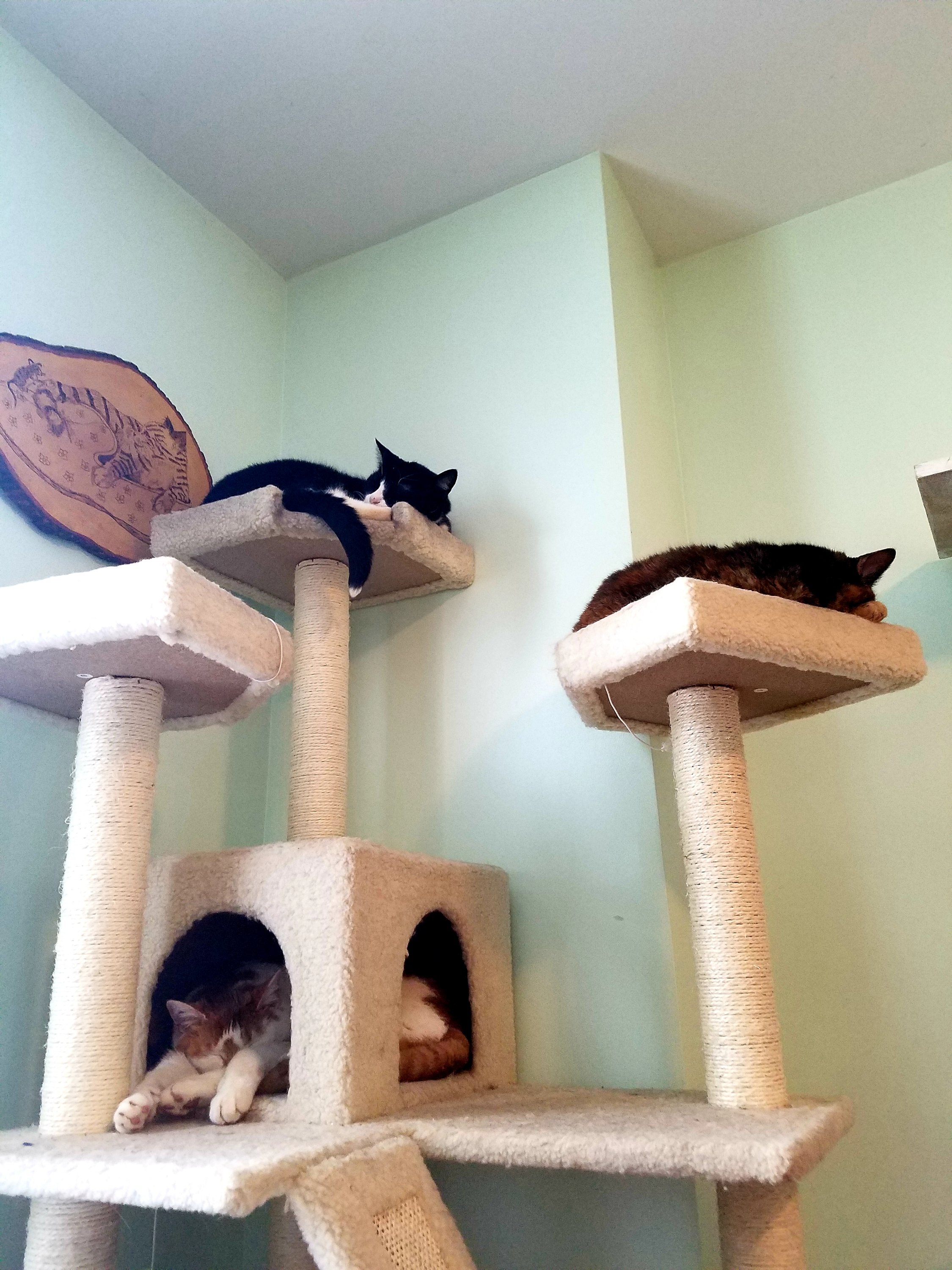 The tallest, most sacred Cat Tree offers the most comfortable napping options.