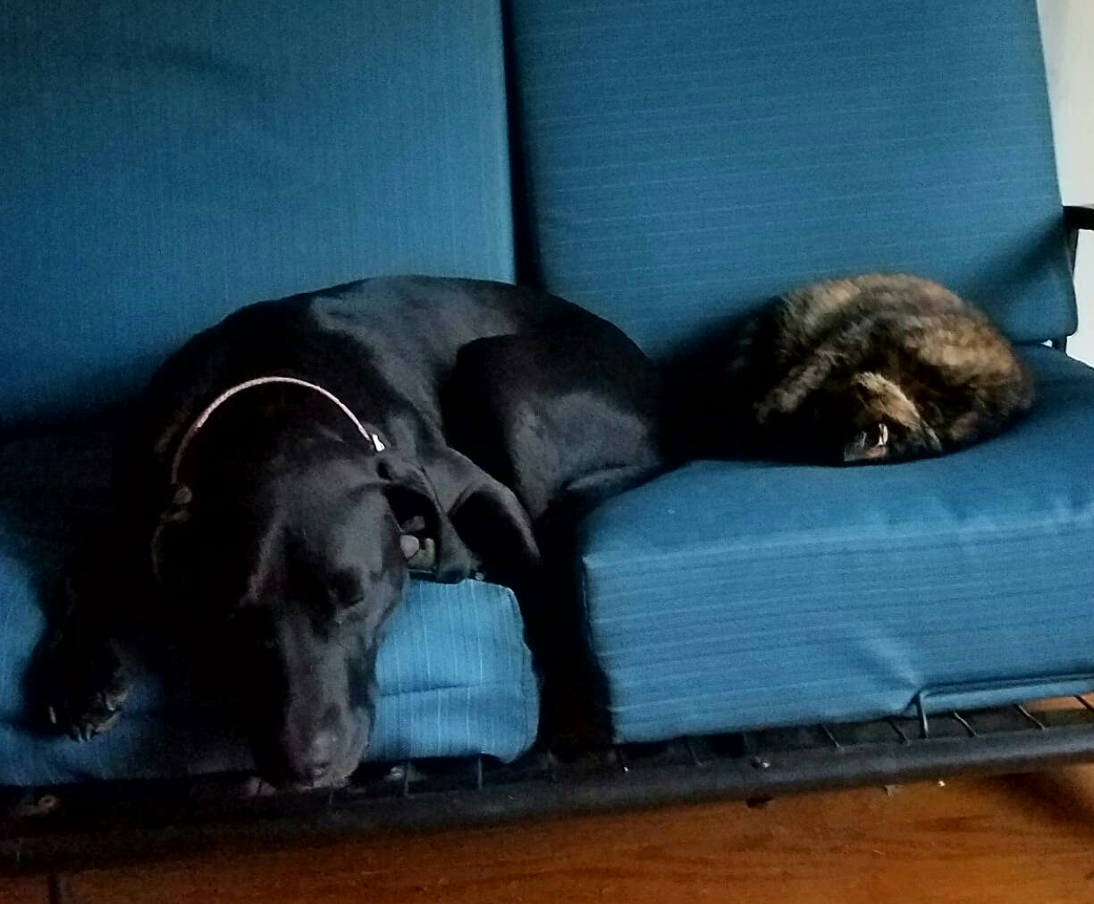 Royalty Posted on November 7, 2016November 6, 2016 by sevencatsandcounting Puppy Princesses need their beauty sleep. So do Cat Queens. Nothing prevents us from napping together once and awhile. We’re all royalty, after all. –Stella and Amber