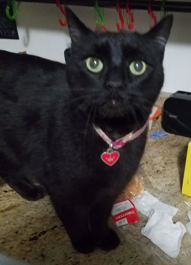 Snack… Posted on April 6, 2019 by sevencatsandcounting You are indulging in a questionably healthy snack, Human Mommy. My question is this… WHERE IS MY SNACK? -Darth Vader