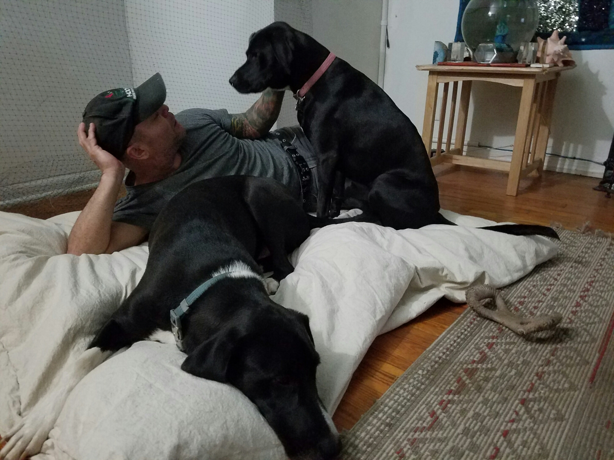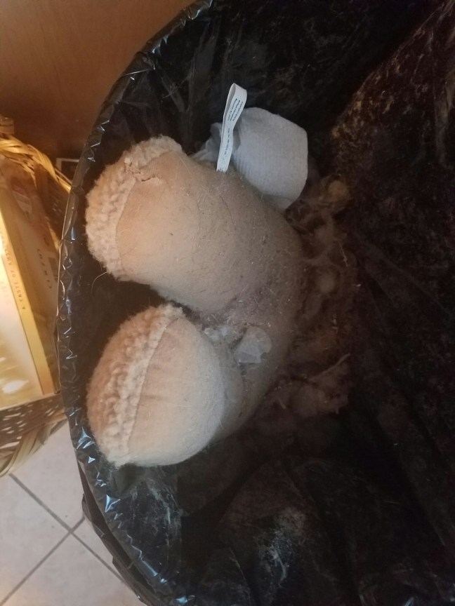 So this is pretty much what it looks like, but please let us explain. Human Daddy left us all alone to do some last minute shopping and Human Mommy abandoned us in favor of a late morning nap upstairs. What were two teething, bored, lonely Dogs supposed to do?